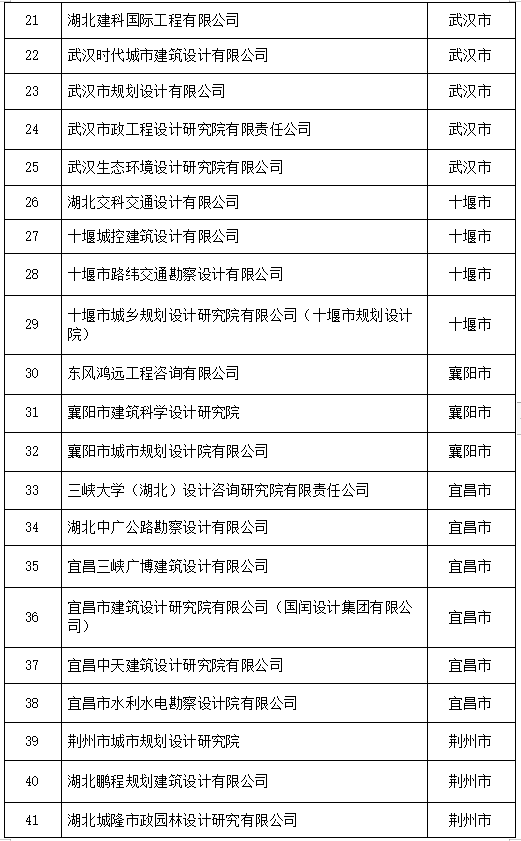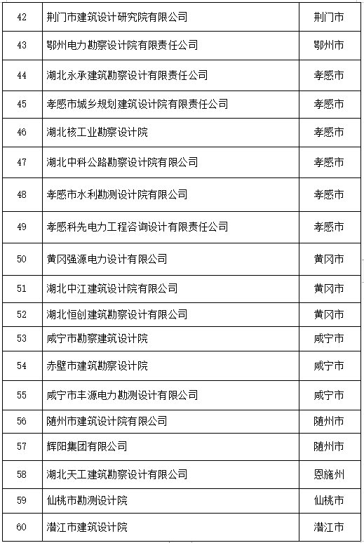 湖北省工程設計和施工雙資質重點培育企業(yè)名單