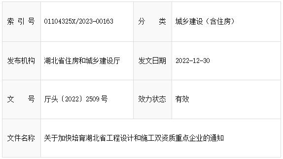 [轉載湖北省住房和城鄉(xiāng)建設廳網]關于加快培育湖北省工程設計和施工雙資質重點企業(yè)的通知